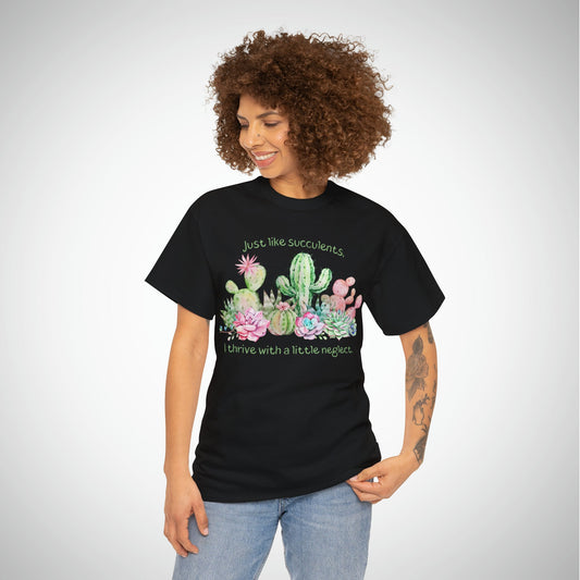 Just like succulents, I thrive with a little neglect - Unisex Succulent T-Shirt