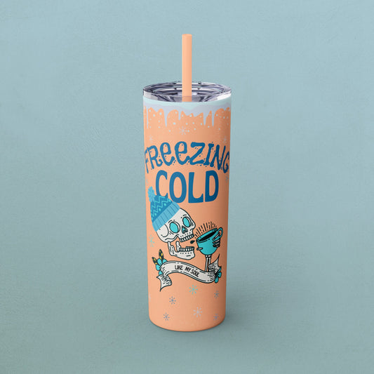 Freezing Cold Like My Soul Skull, Skinny Tumbler with Straw, 20oz