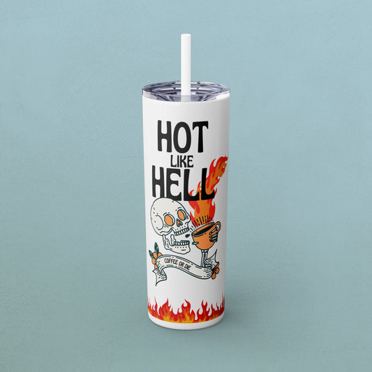 Hot Like Hell Coffee Skull, Skinny Tumbler with Straw, 20oz