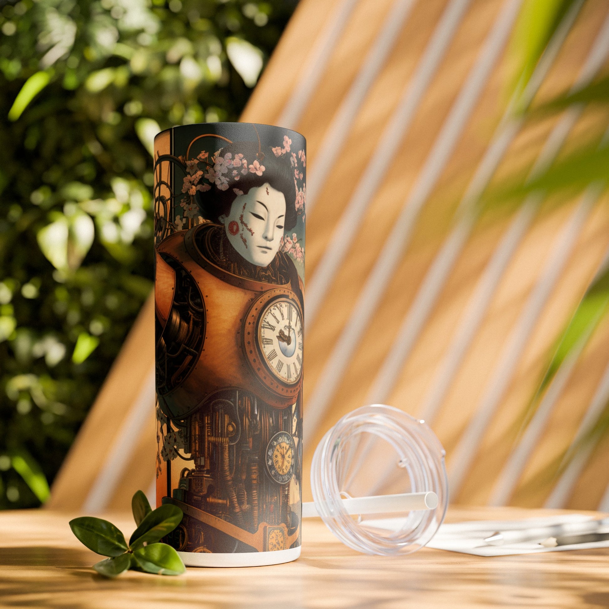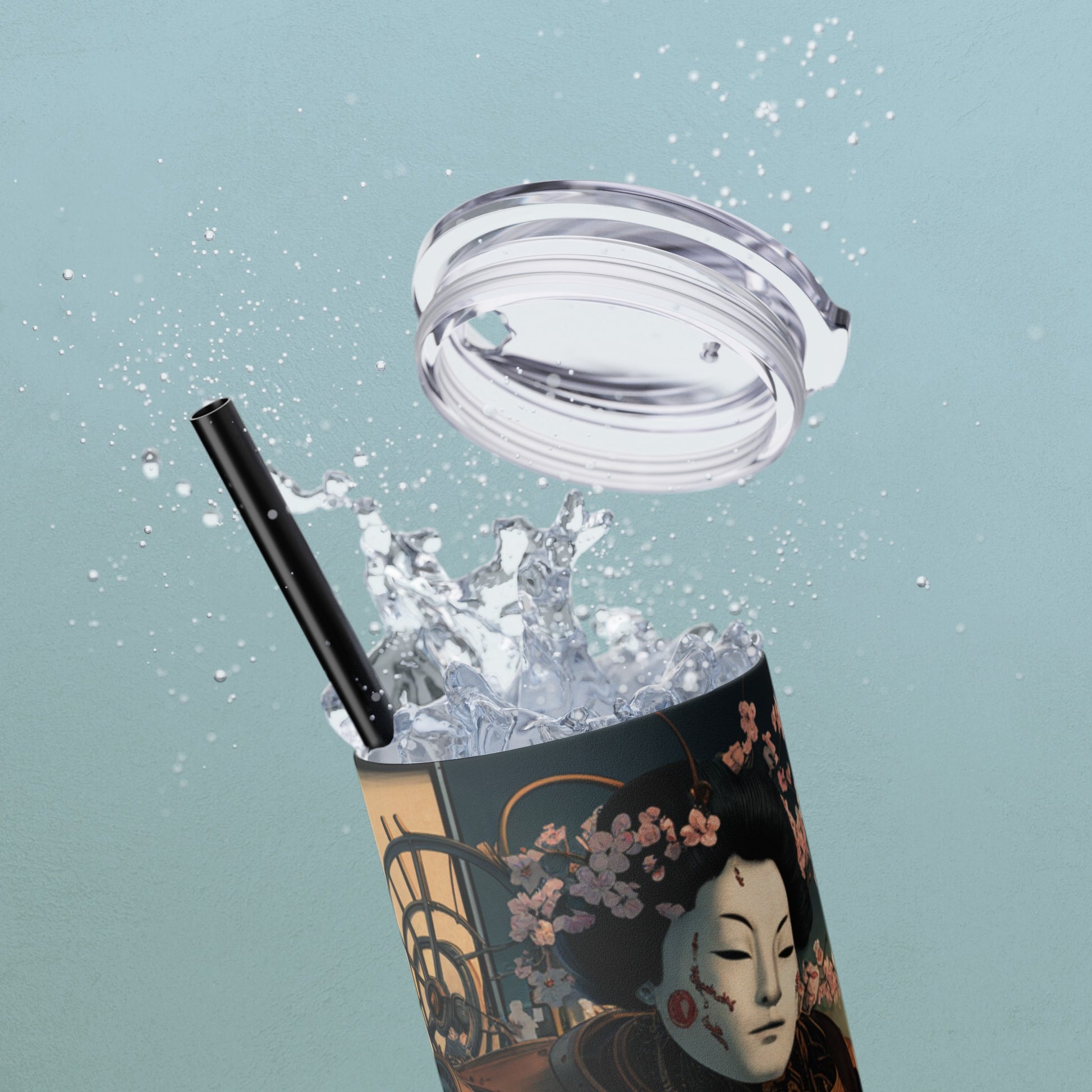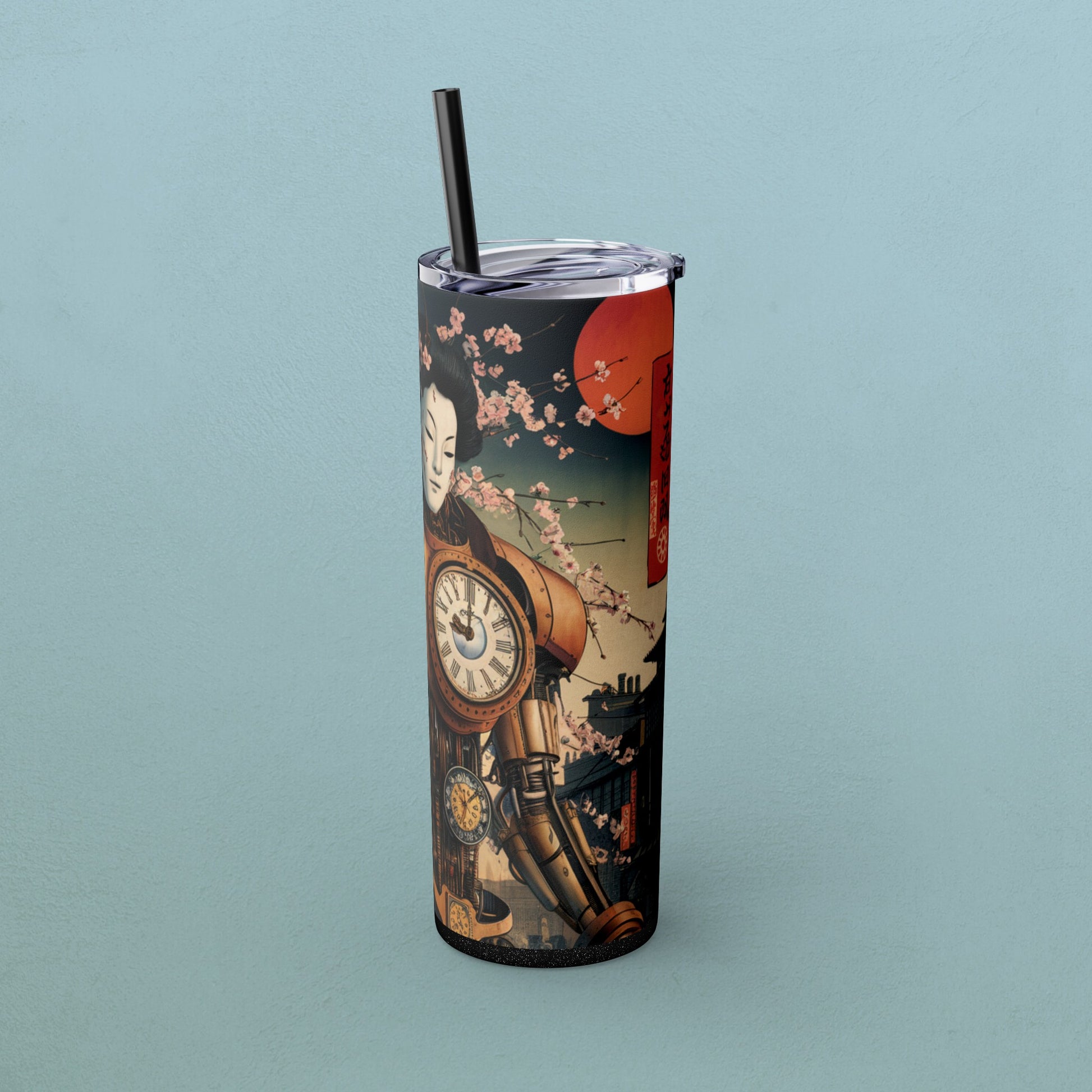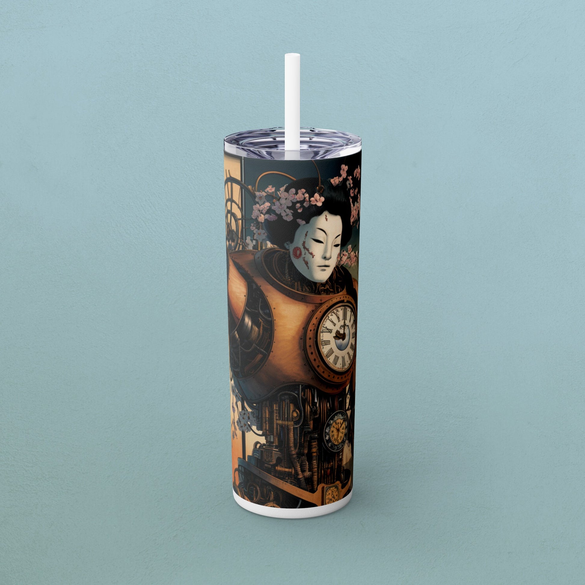 Geisha Cyborg, Skinny Tumbler with Straw, 20oz