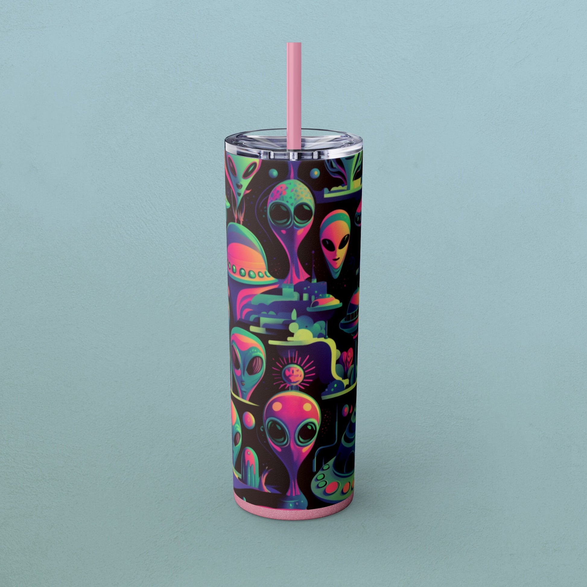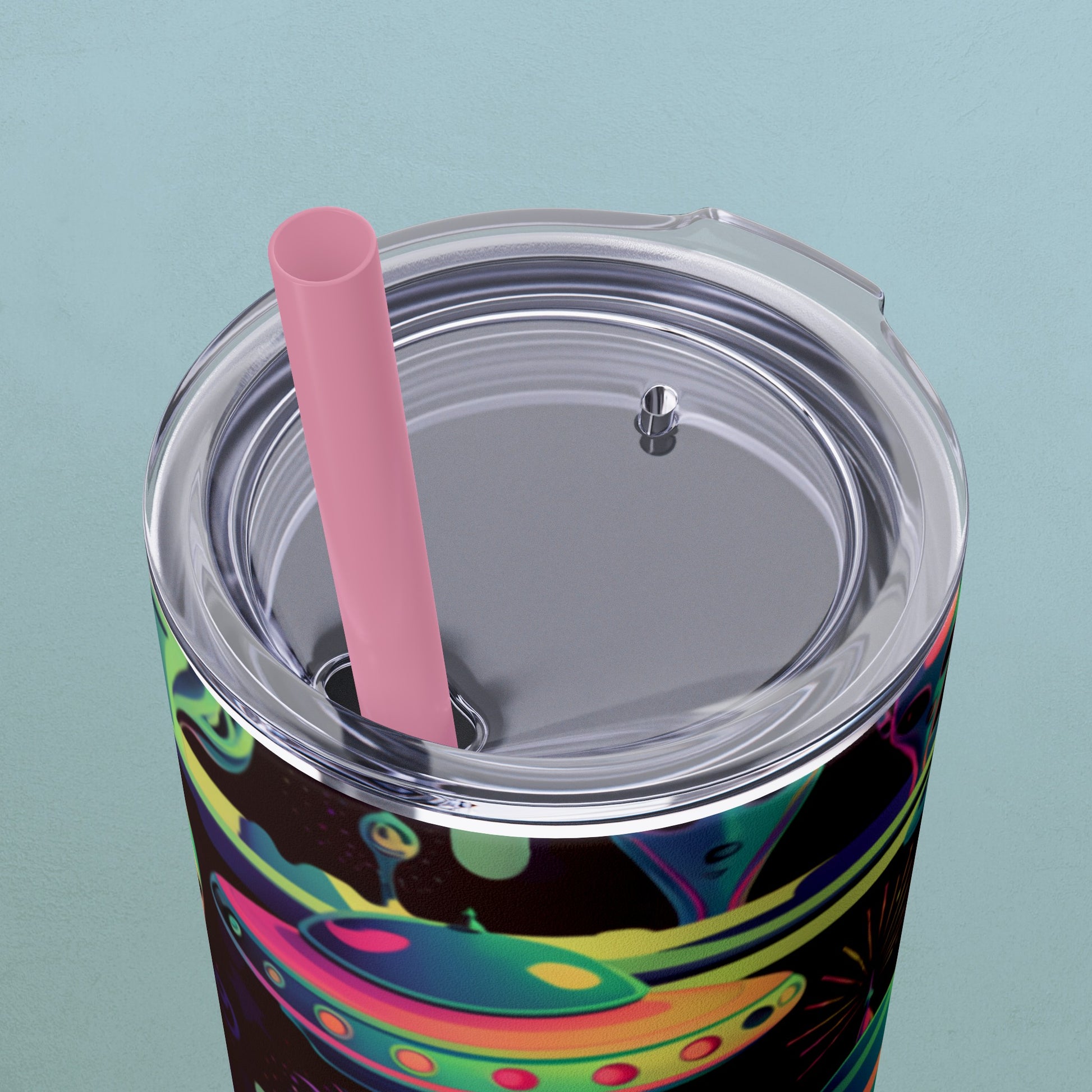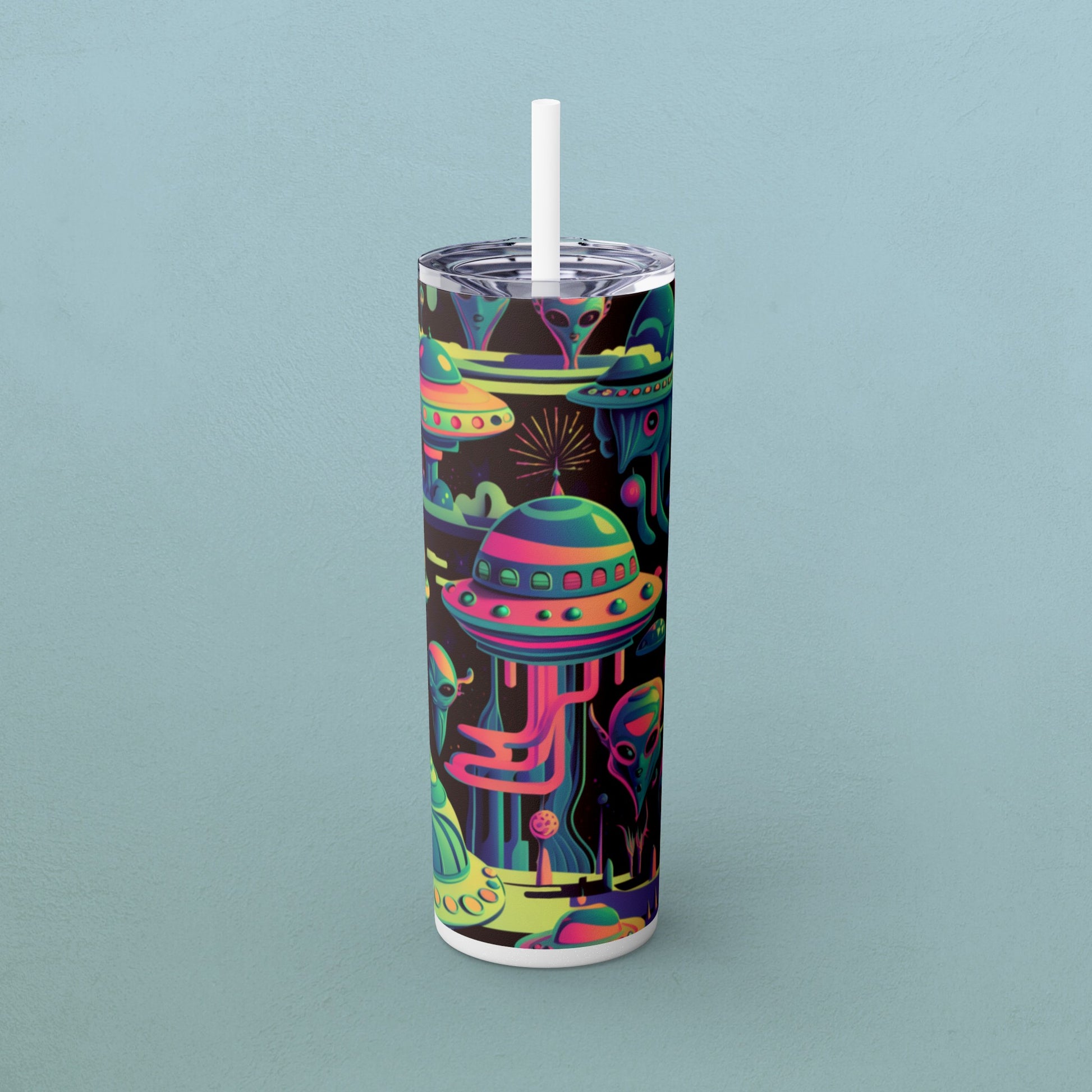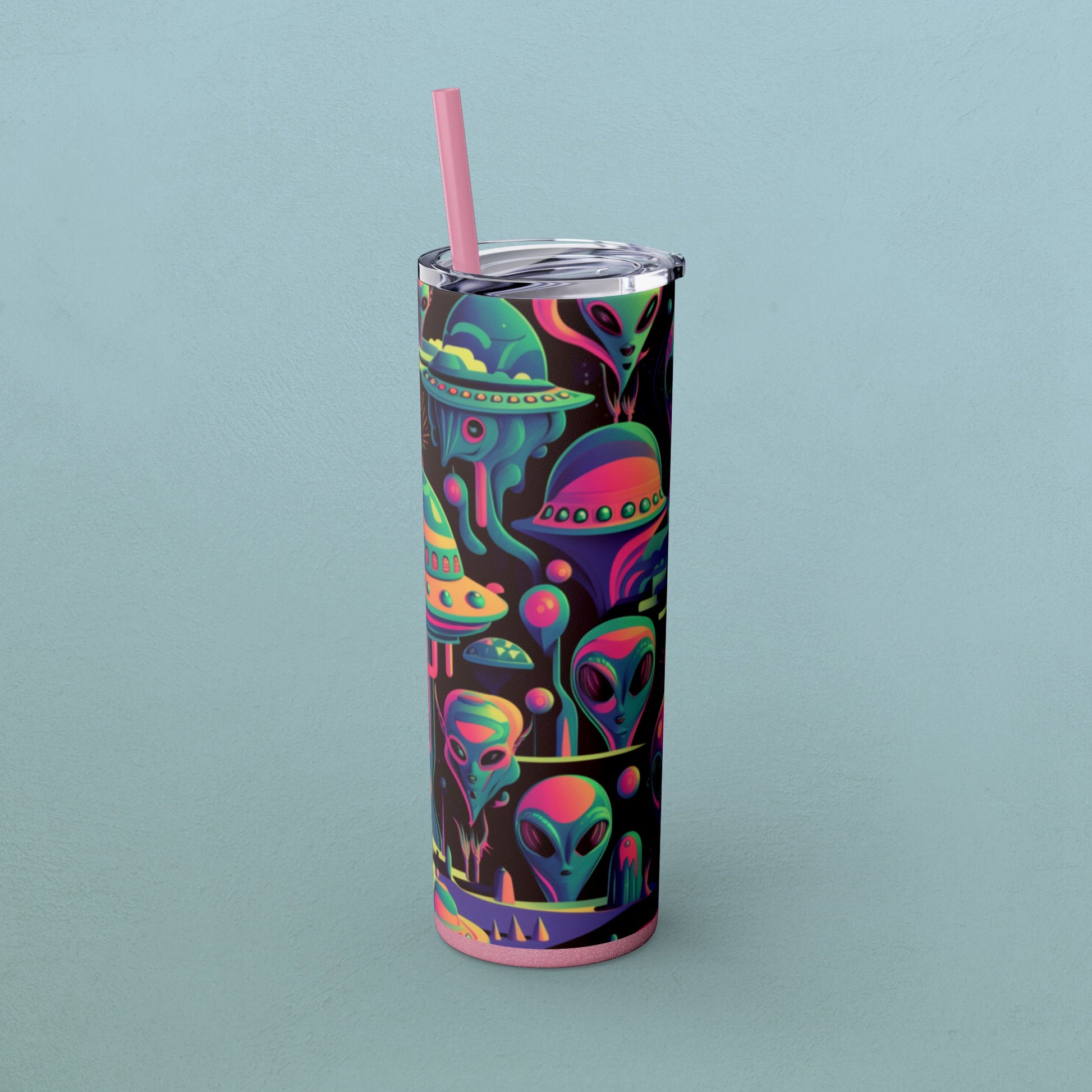 Psychedelic Aliens, Skinny Tumbler with Straw, 20oz