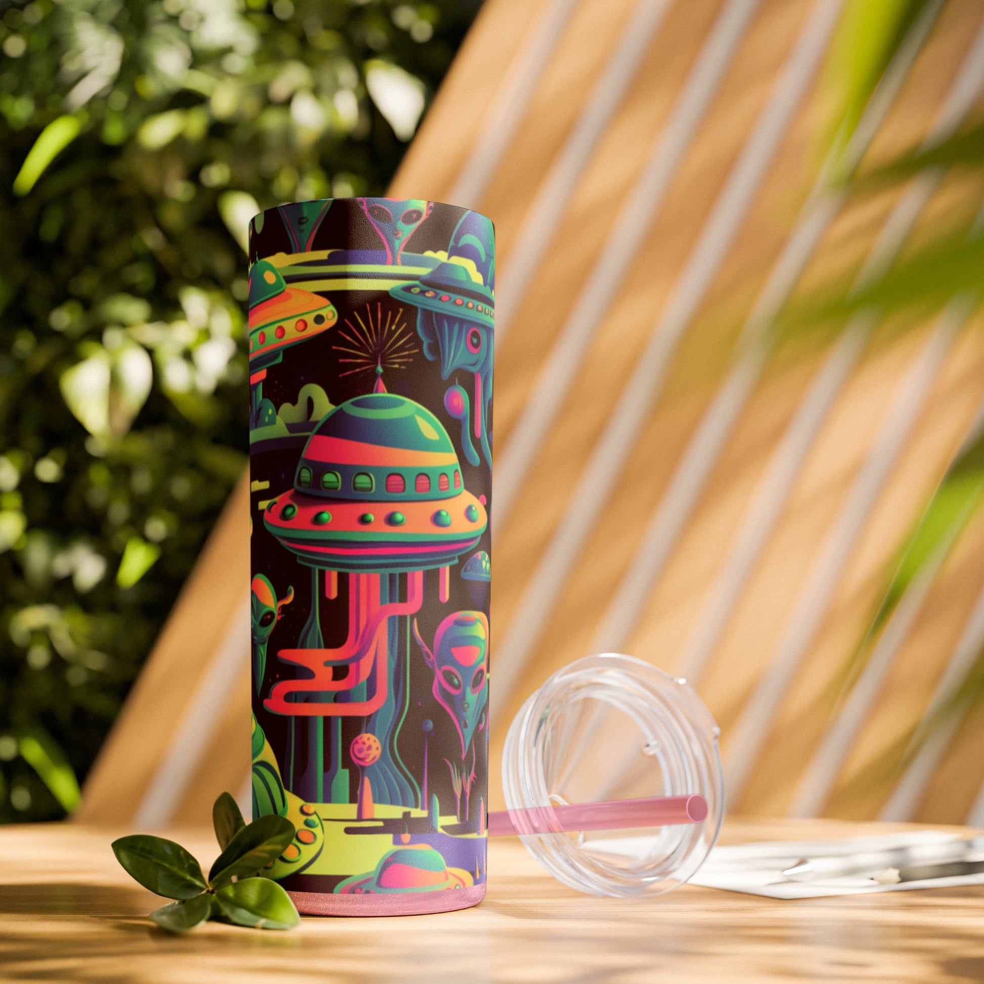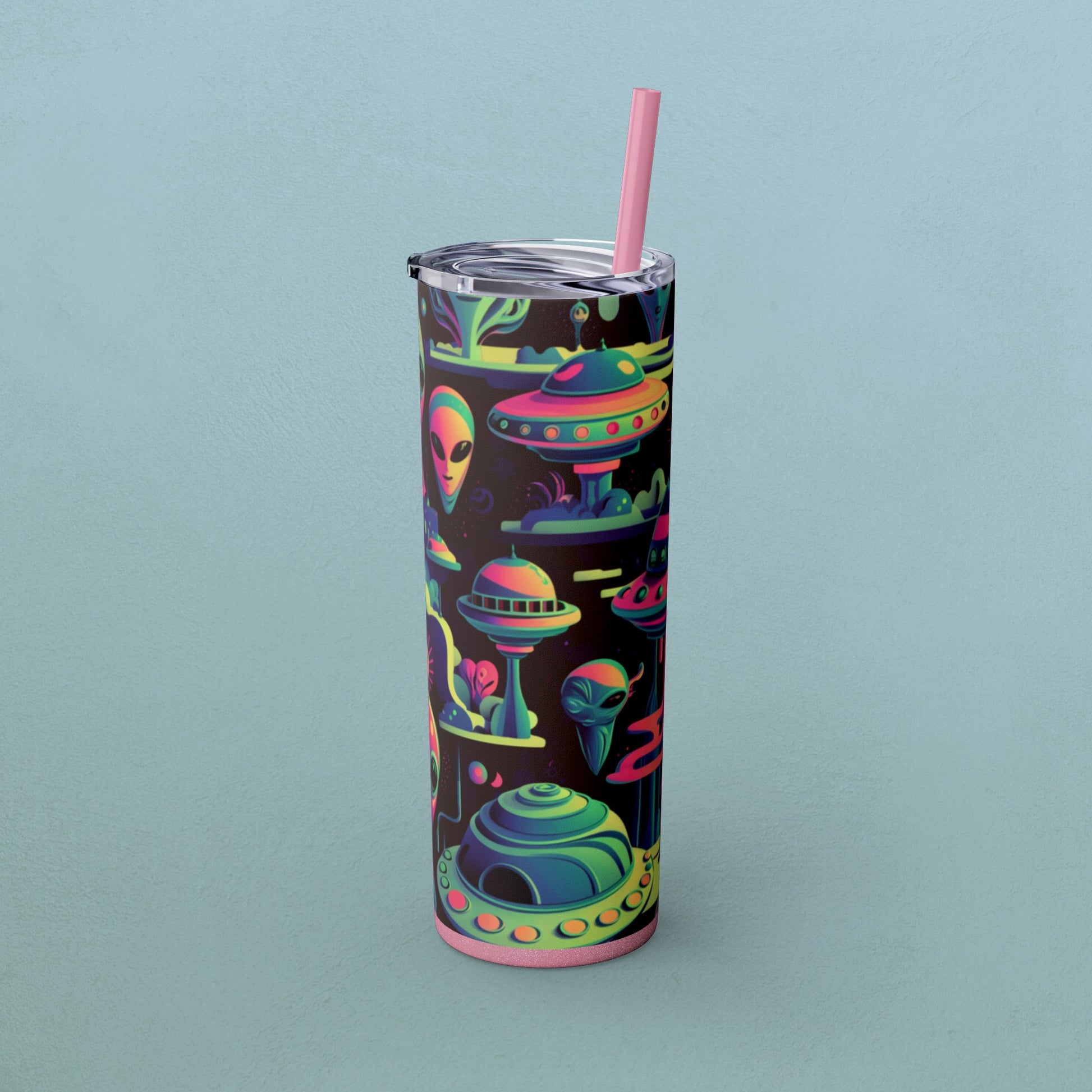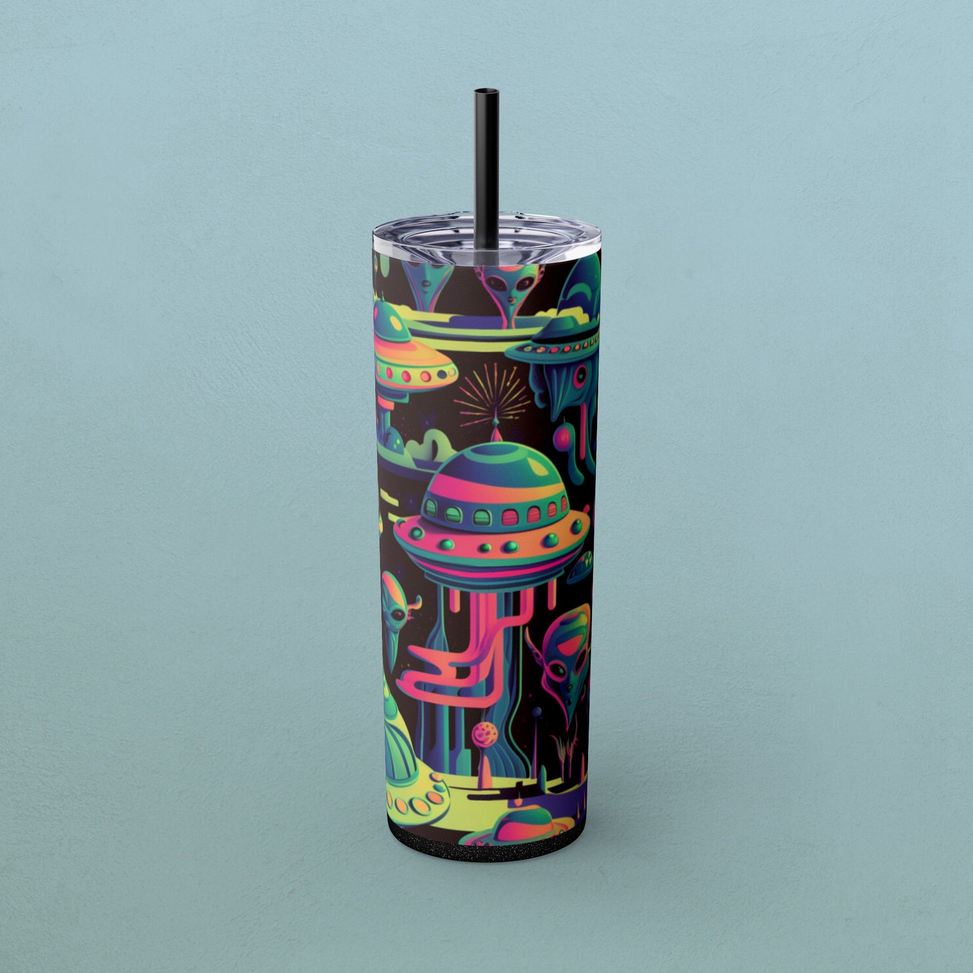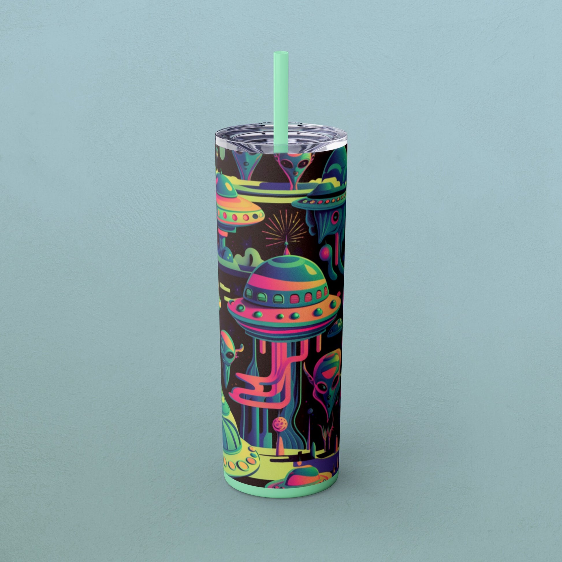 Psychedelic Aliens, Skinny Tumbler with Straw, 20oz