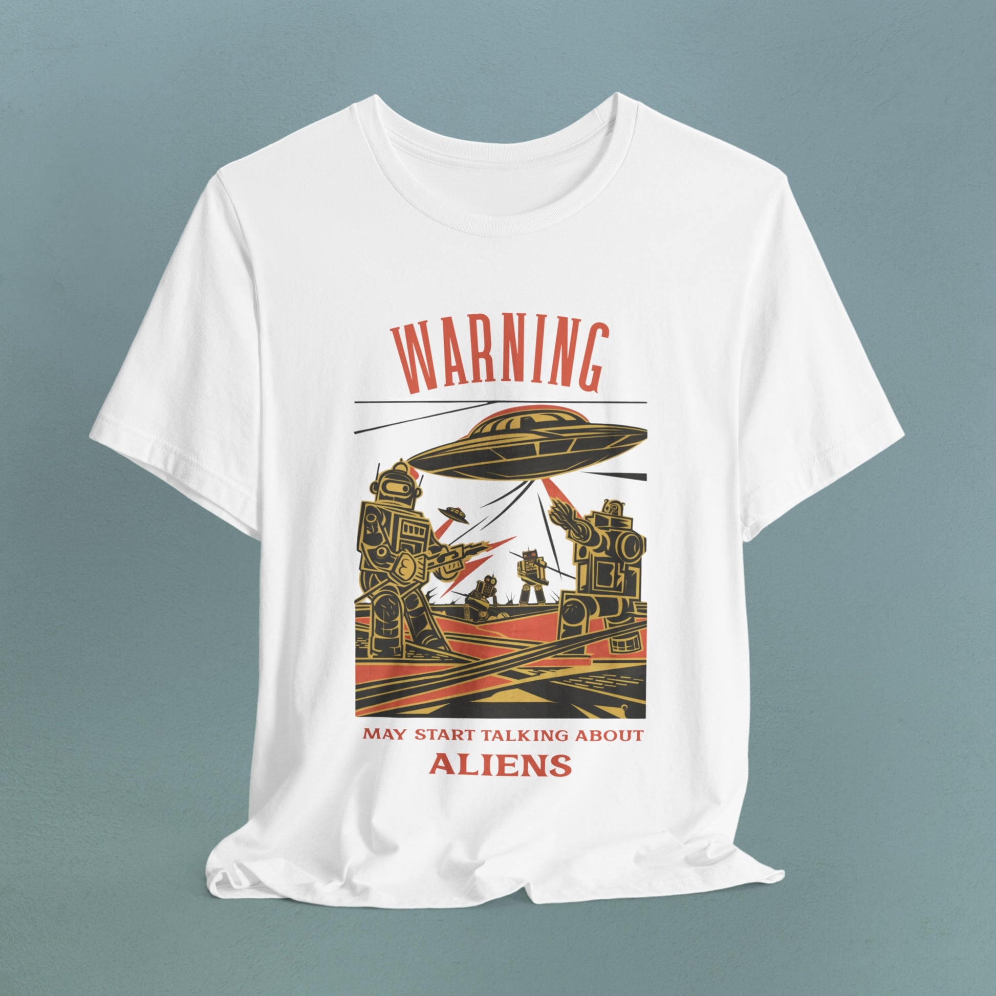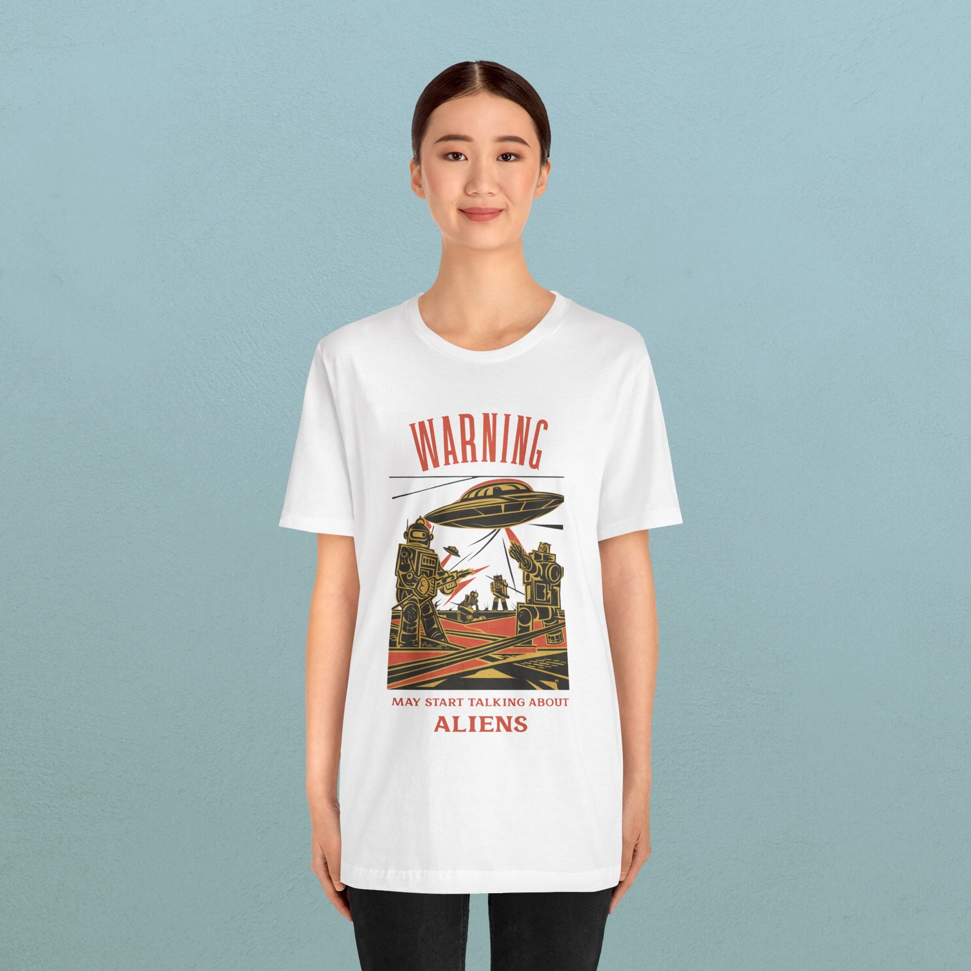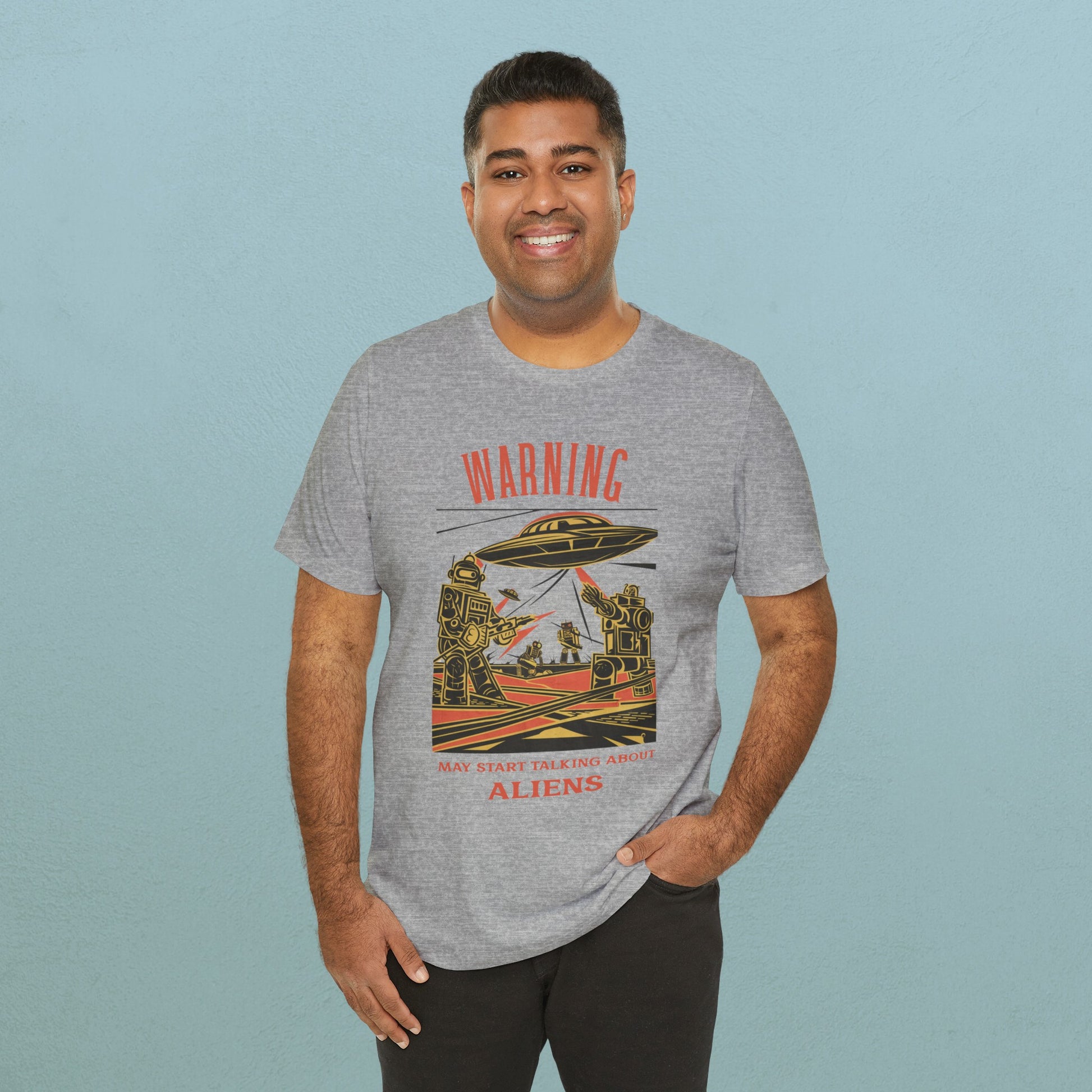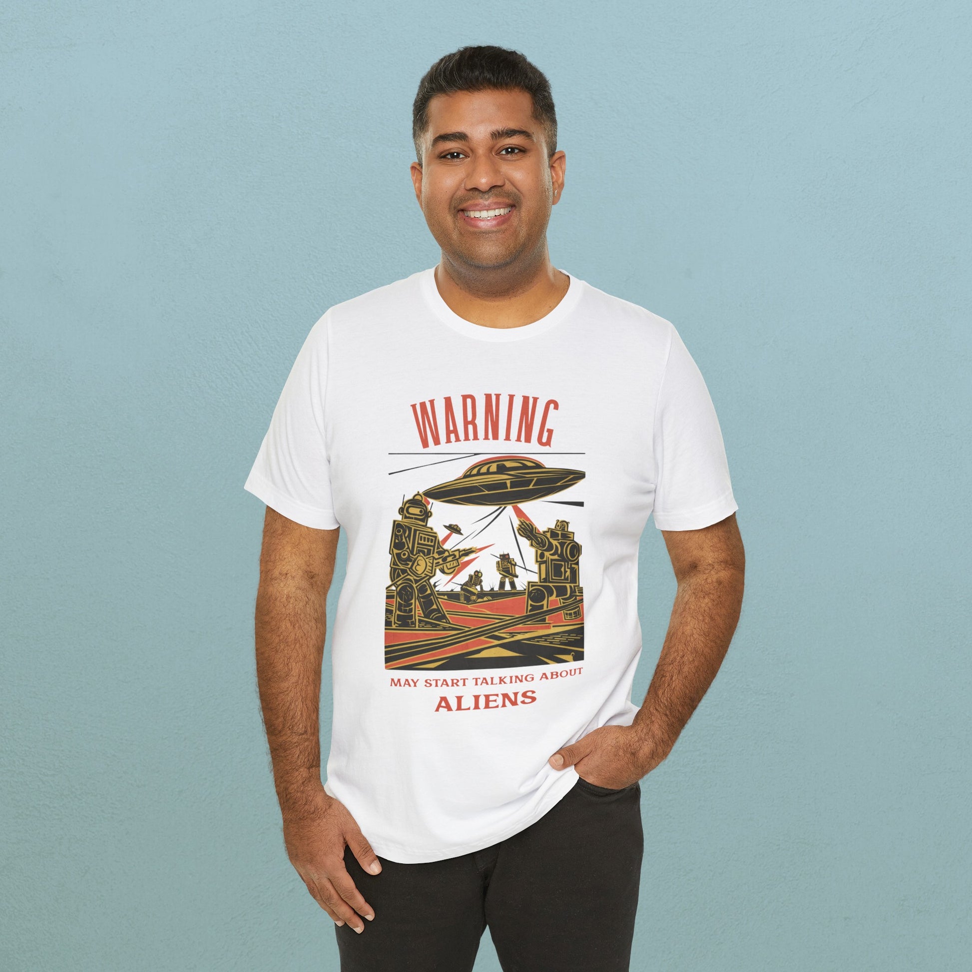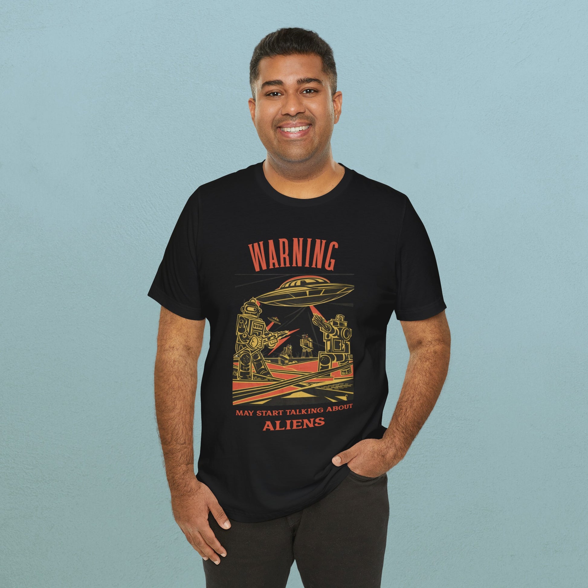 Warning may start talking about aliens (robots and UFO design) - Unisex Jersey T-Shirt
