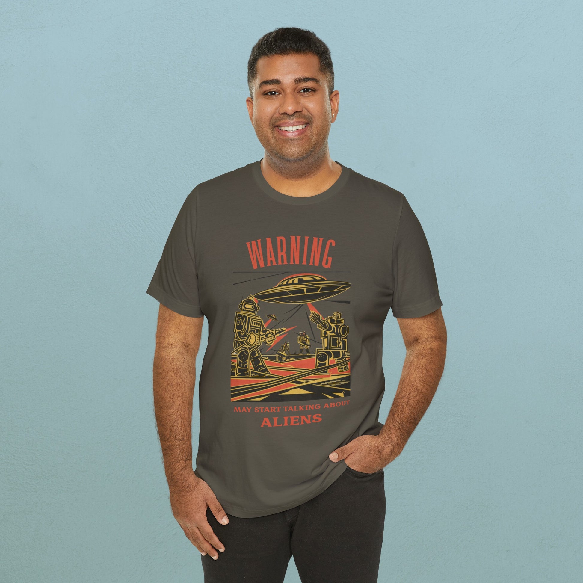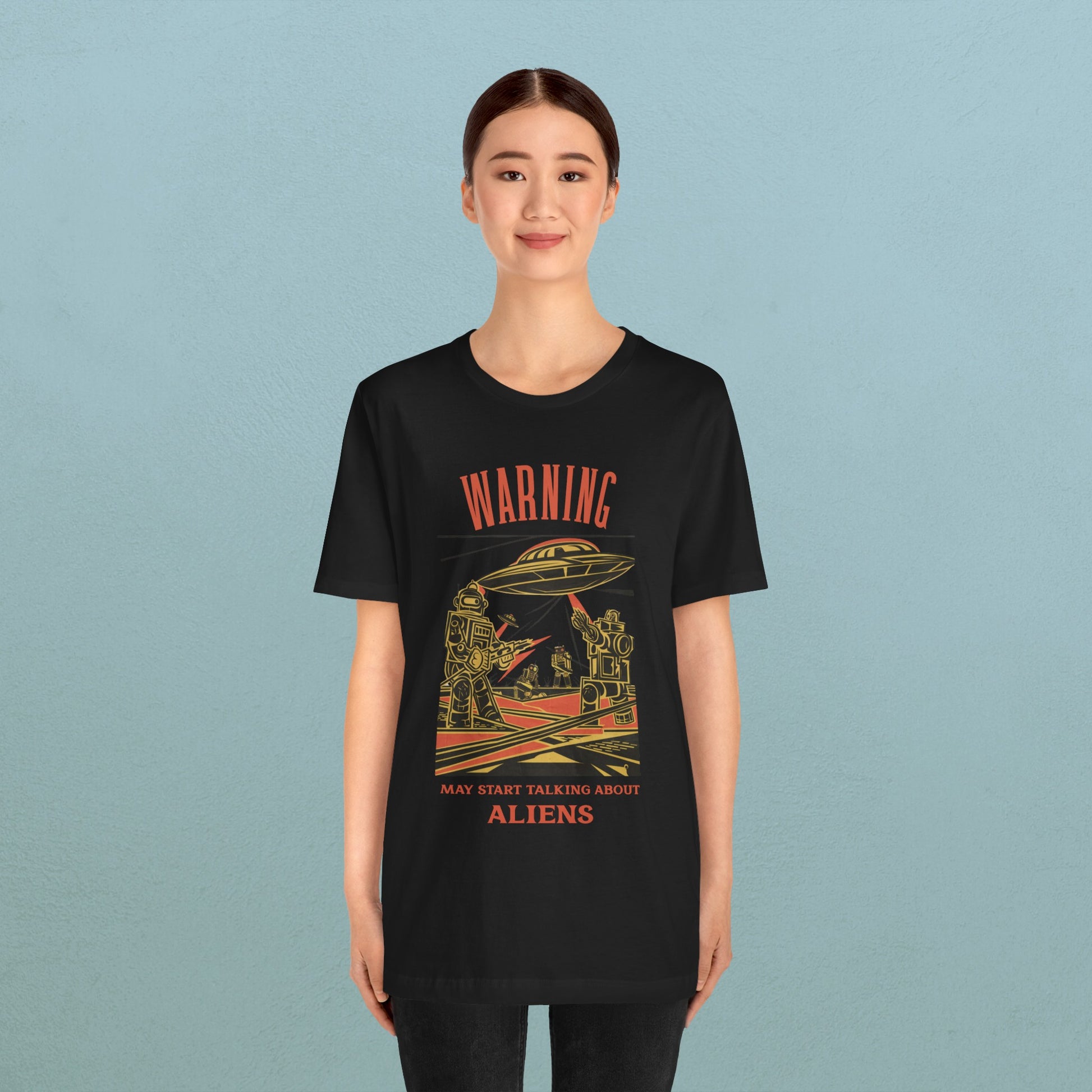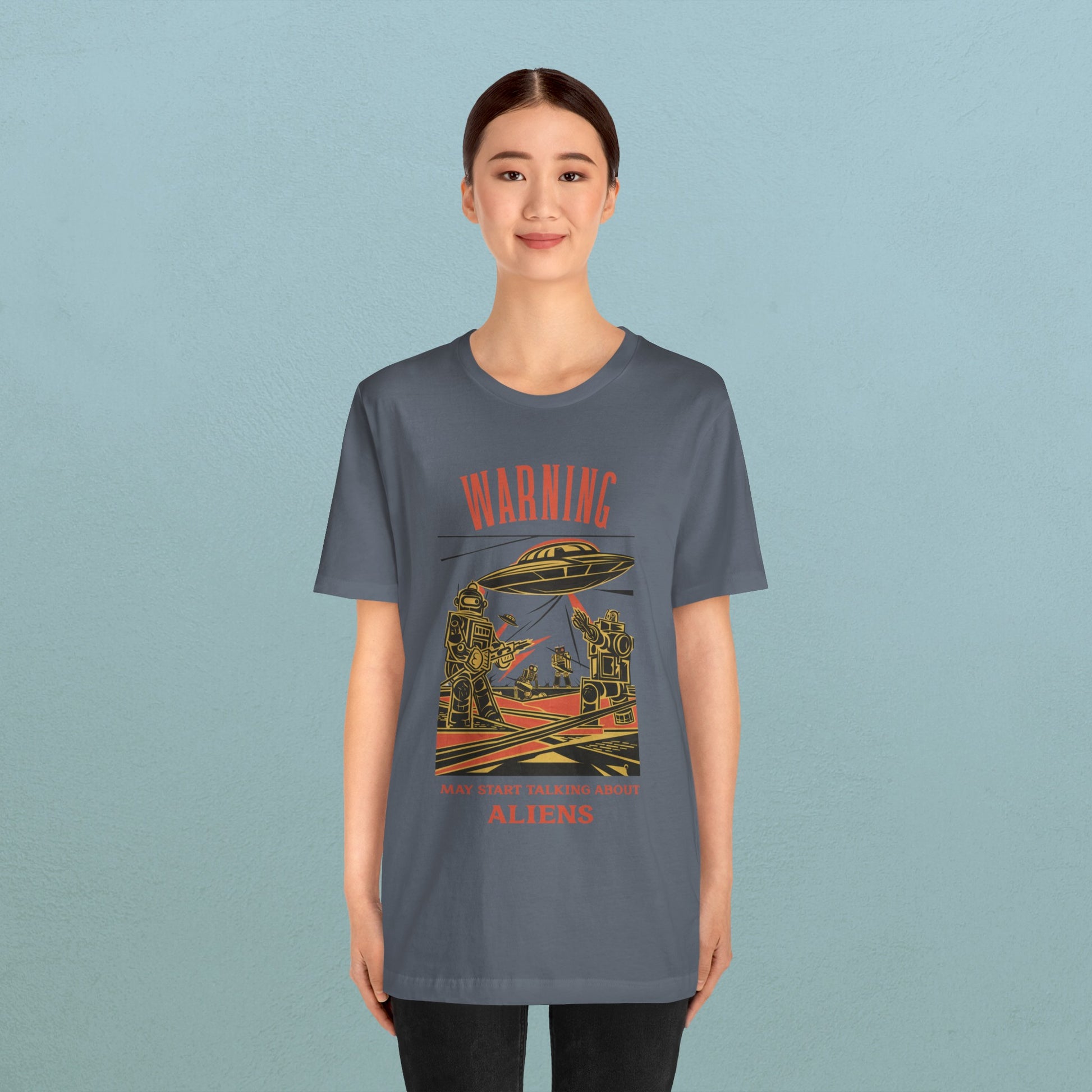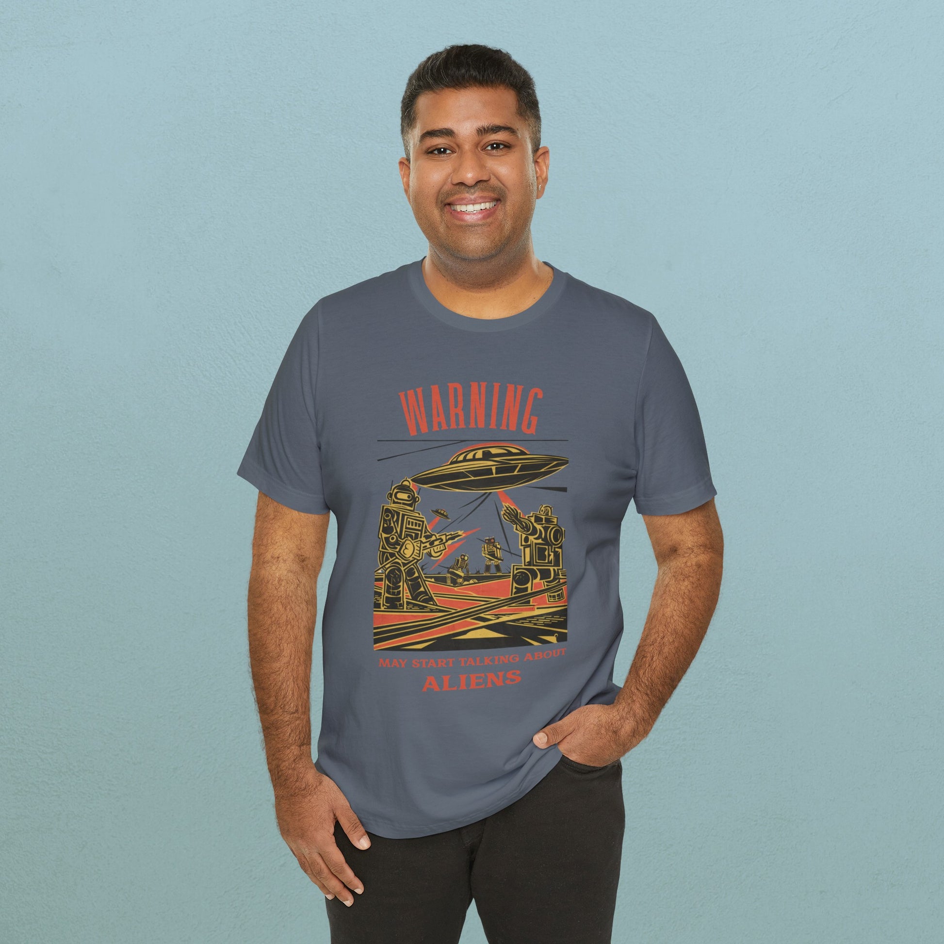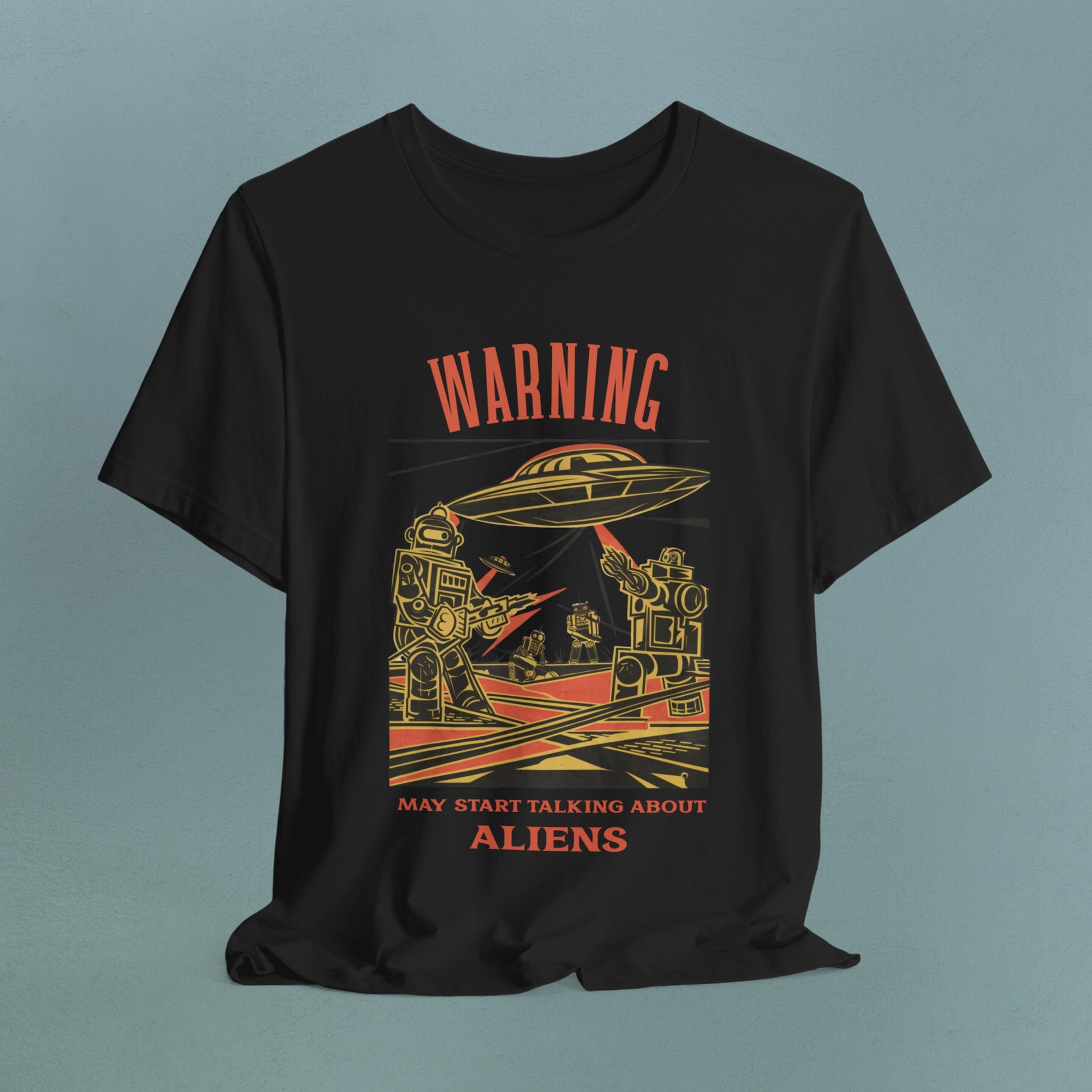 Warning may start talking about aliens (robots and UFO design) - Unisex Jersey T-Shirt