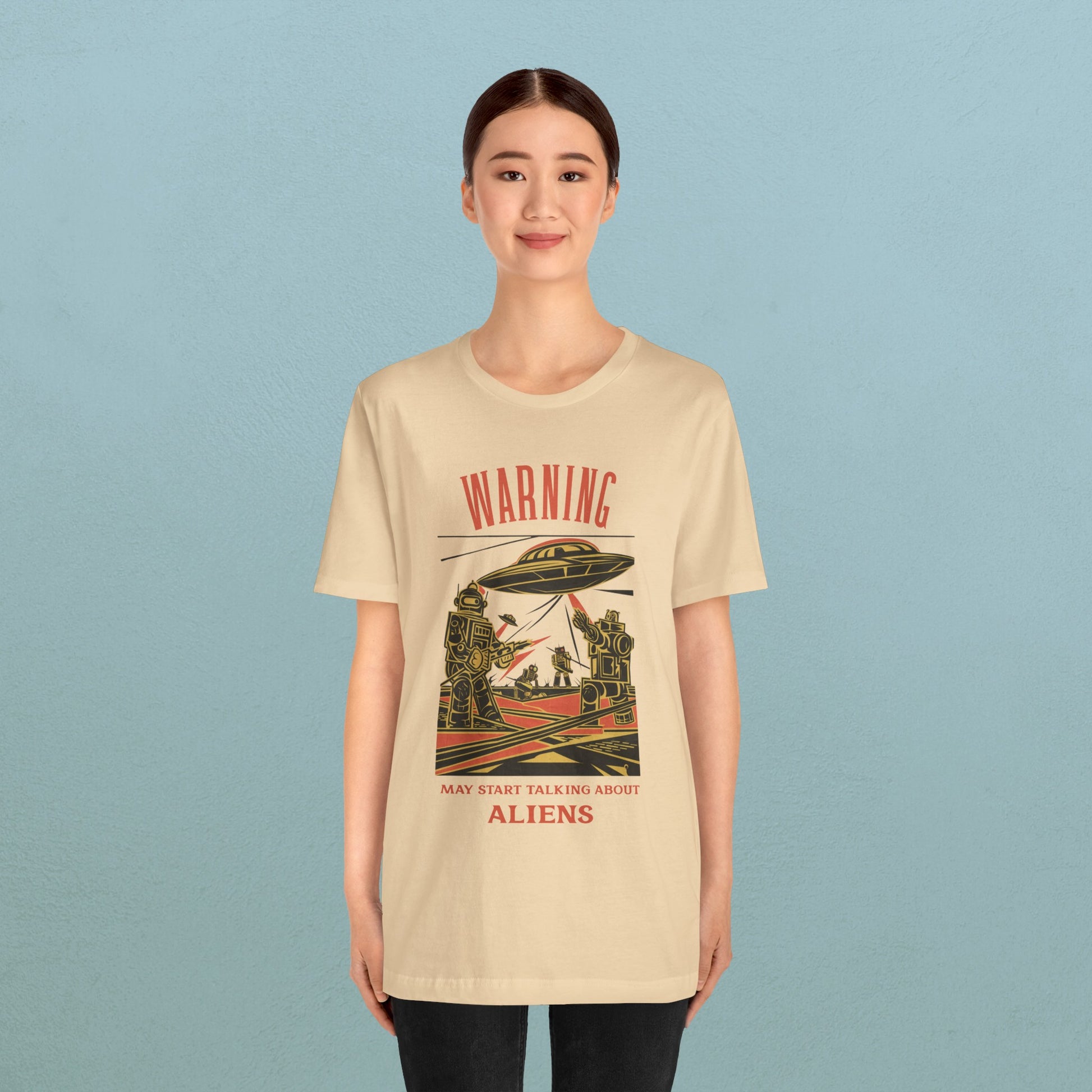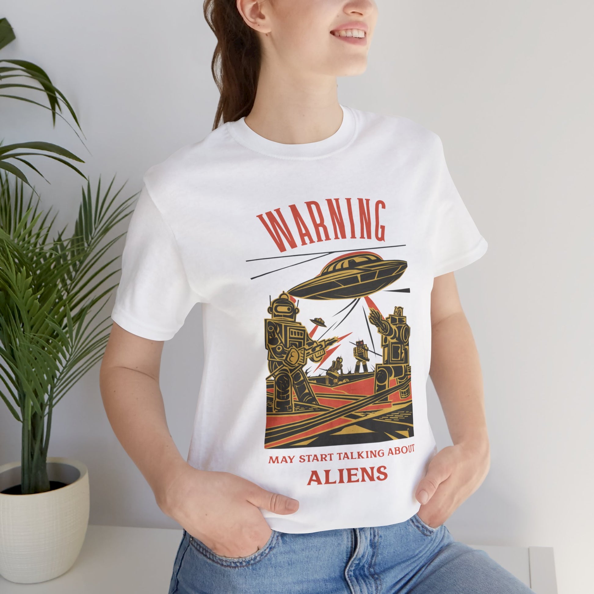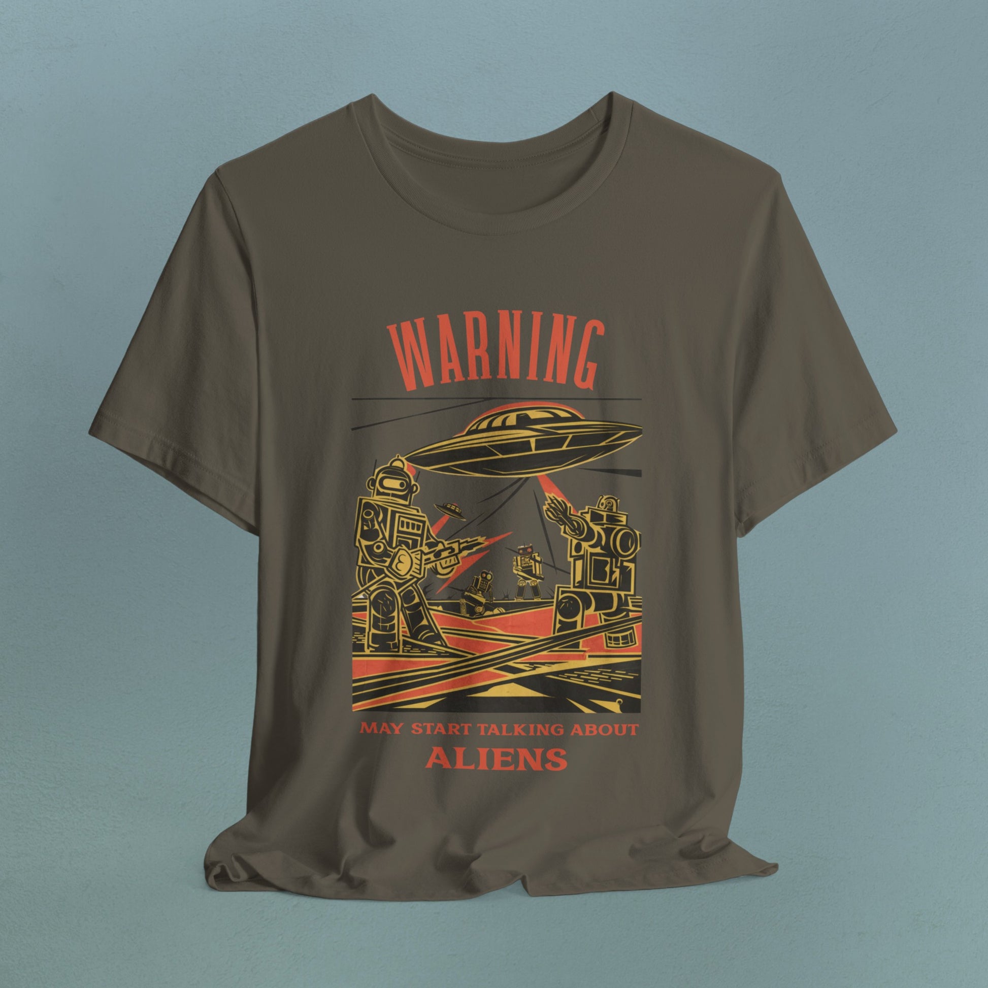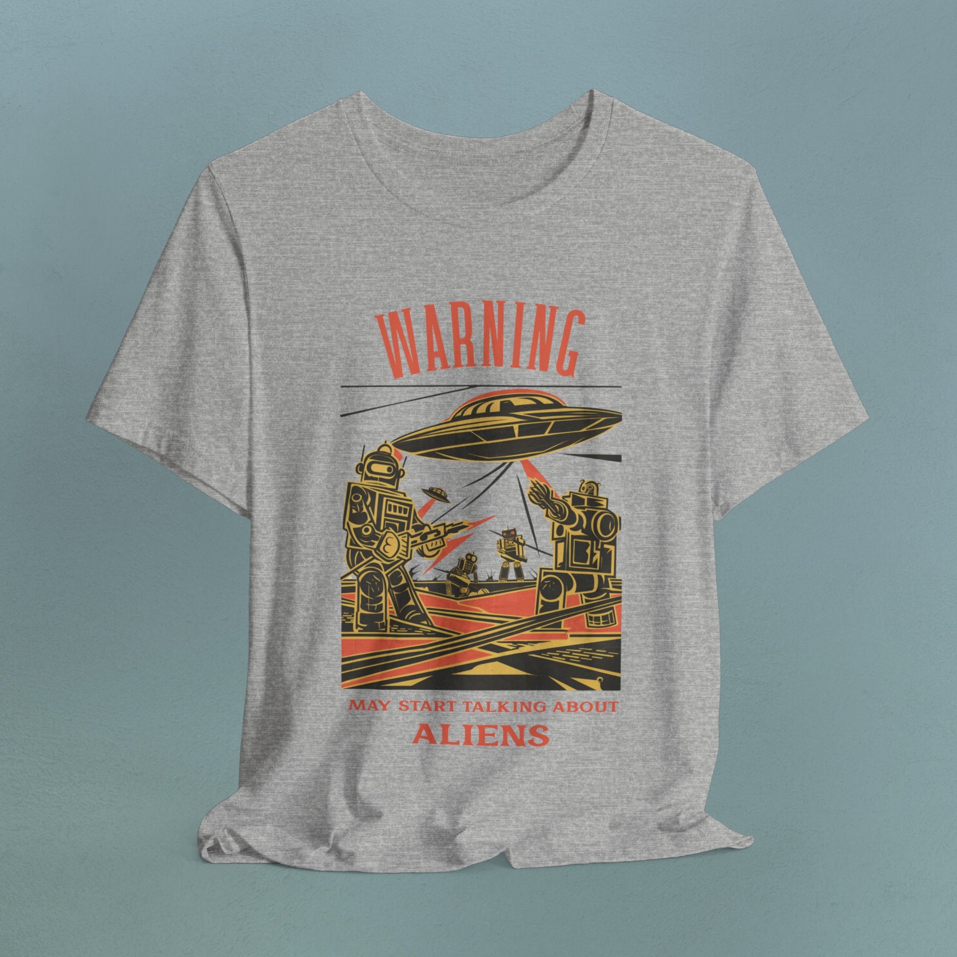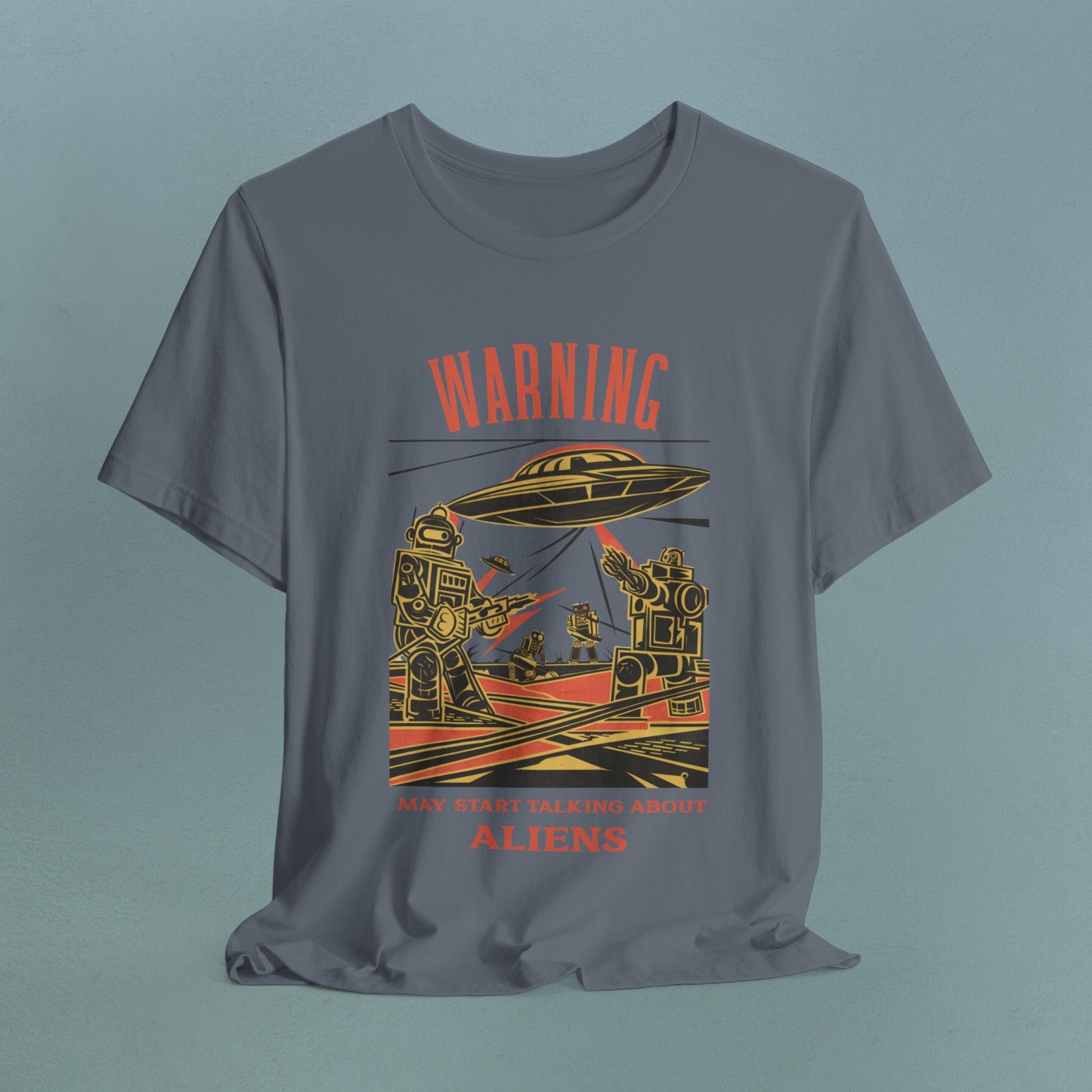 Warning may start talking about aliens (robots and UFO design) - Unisex Jersey T-Shirt