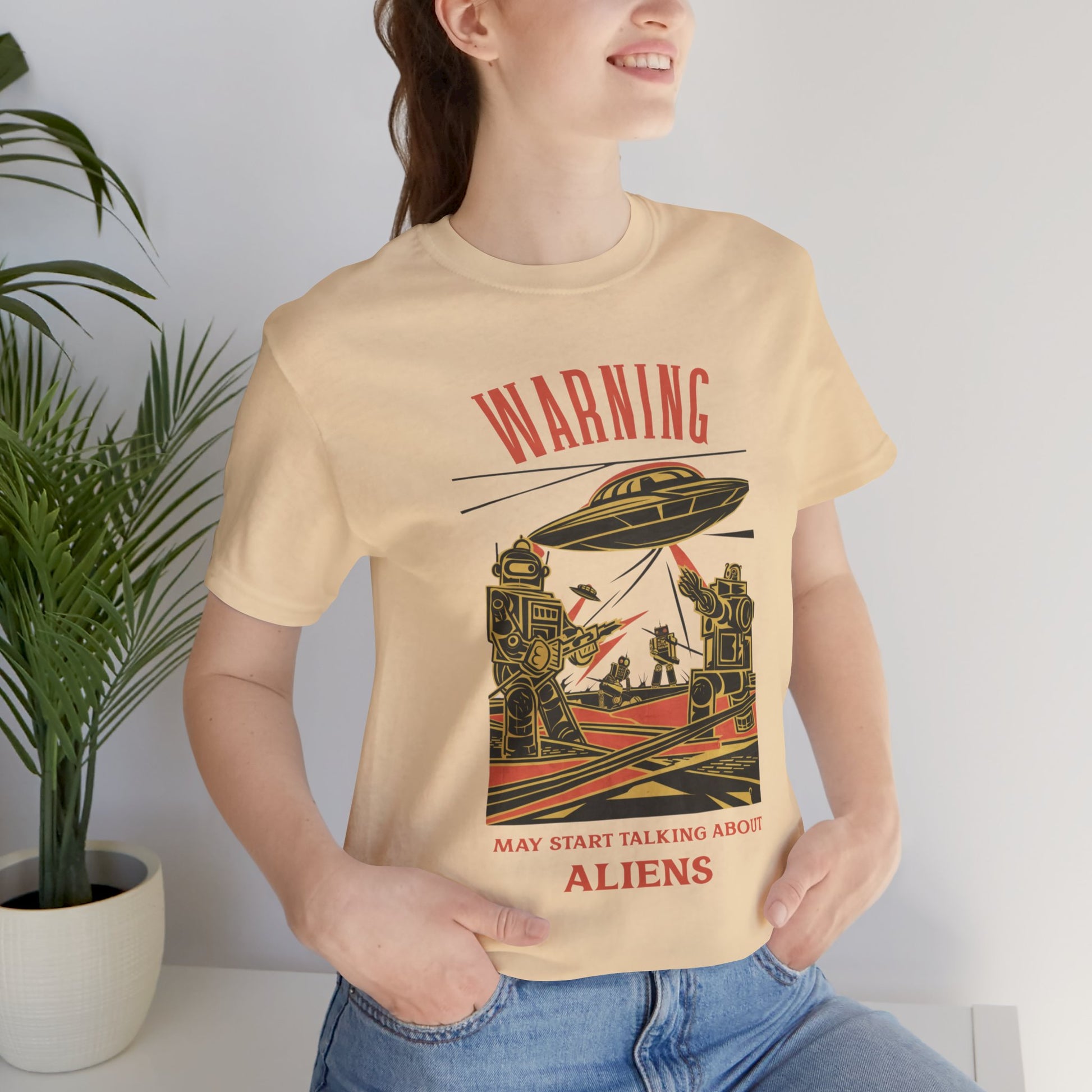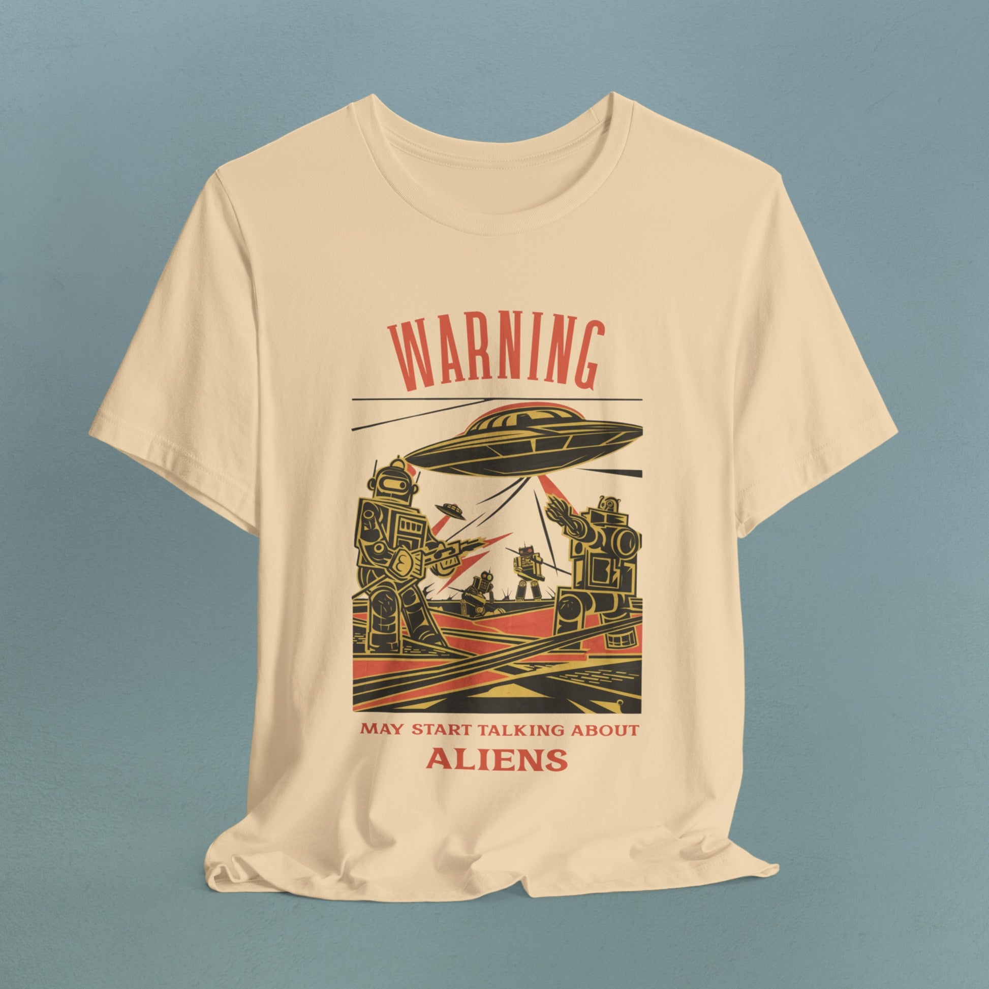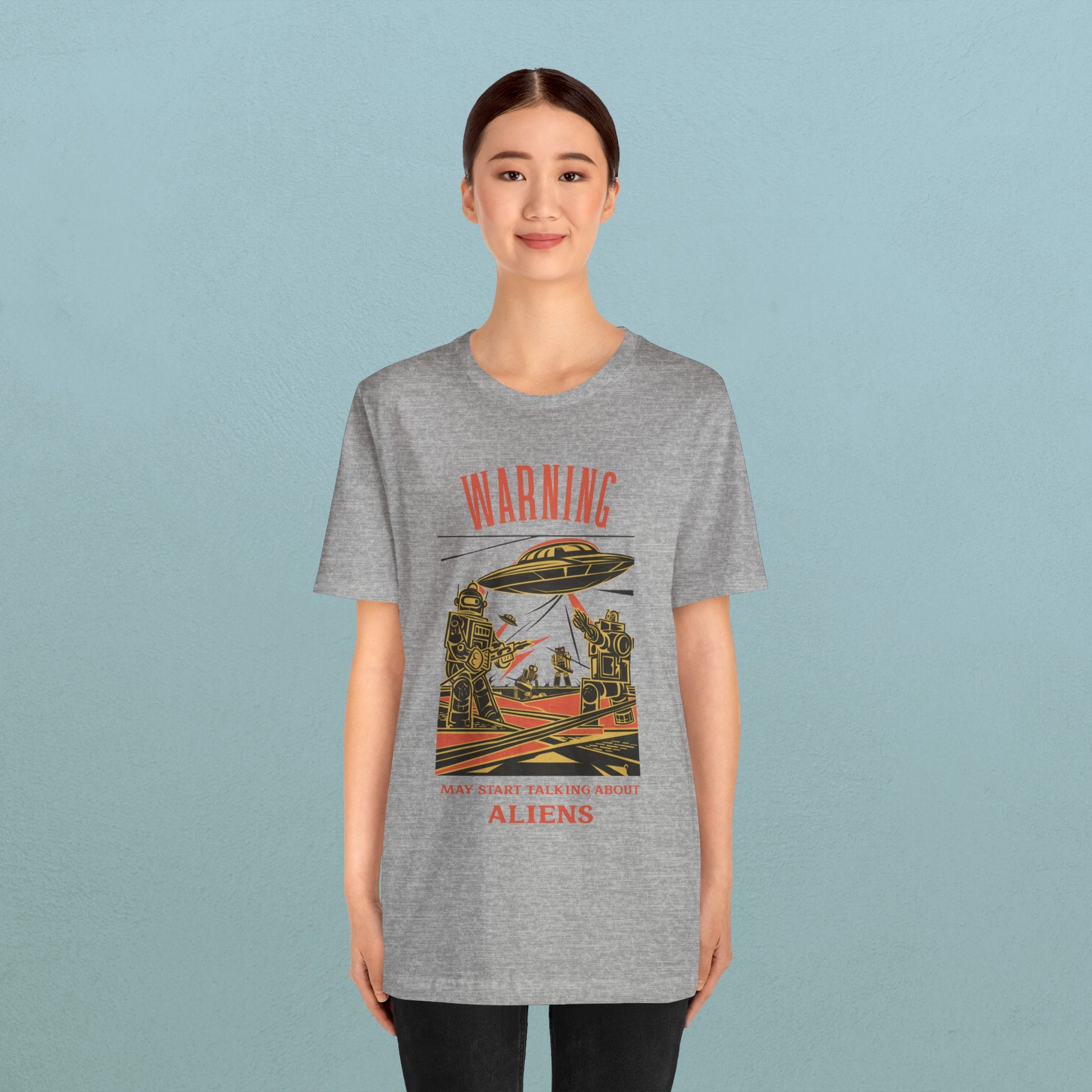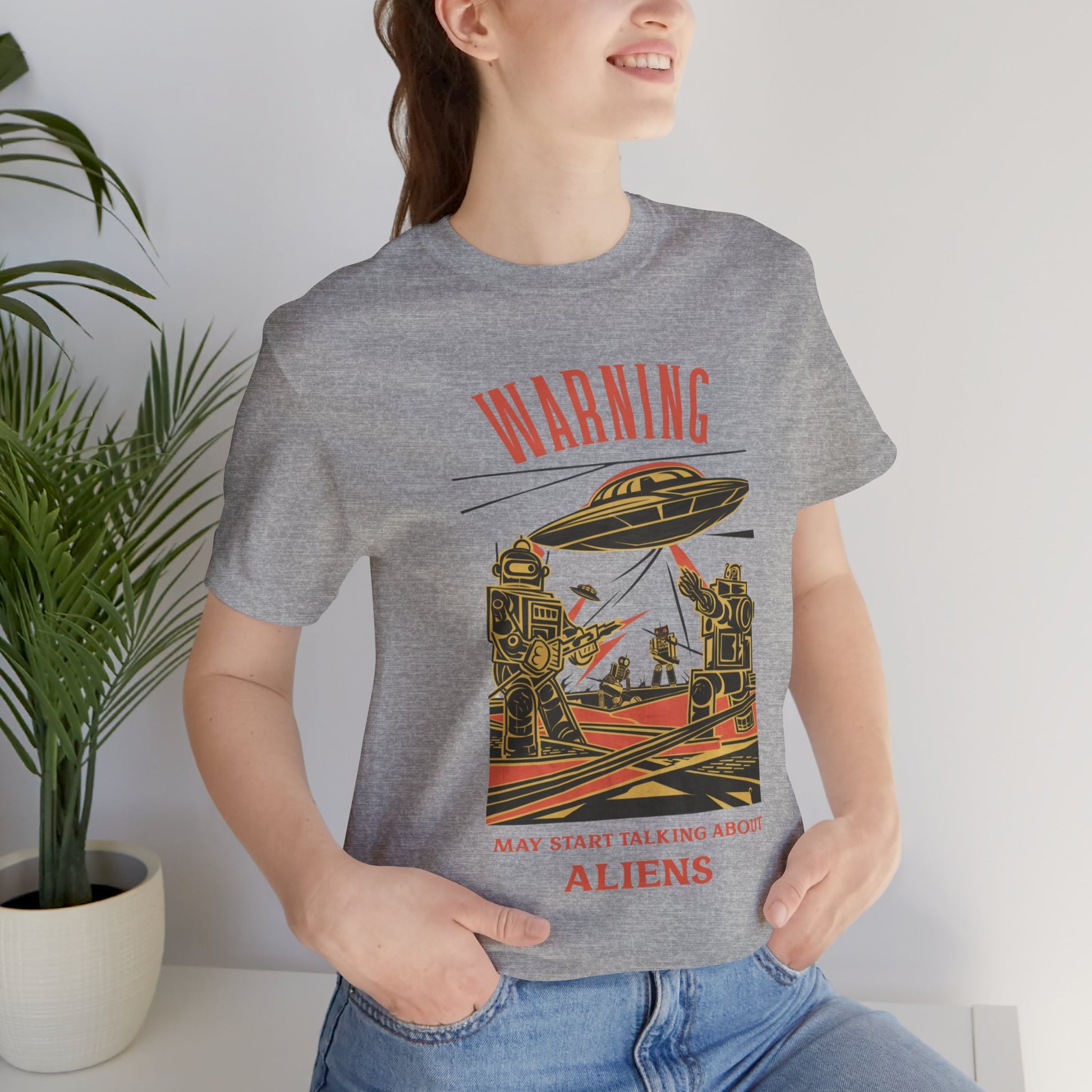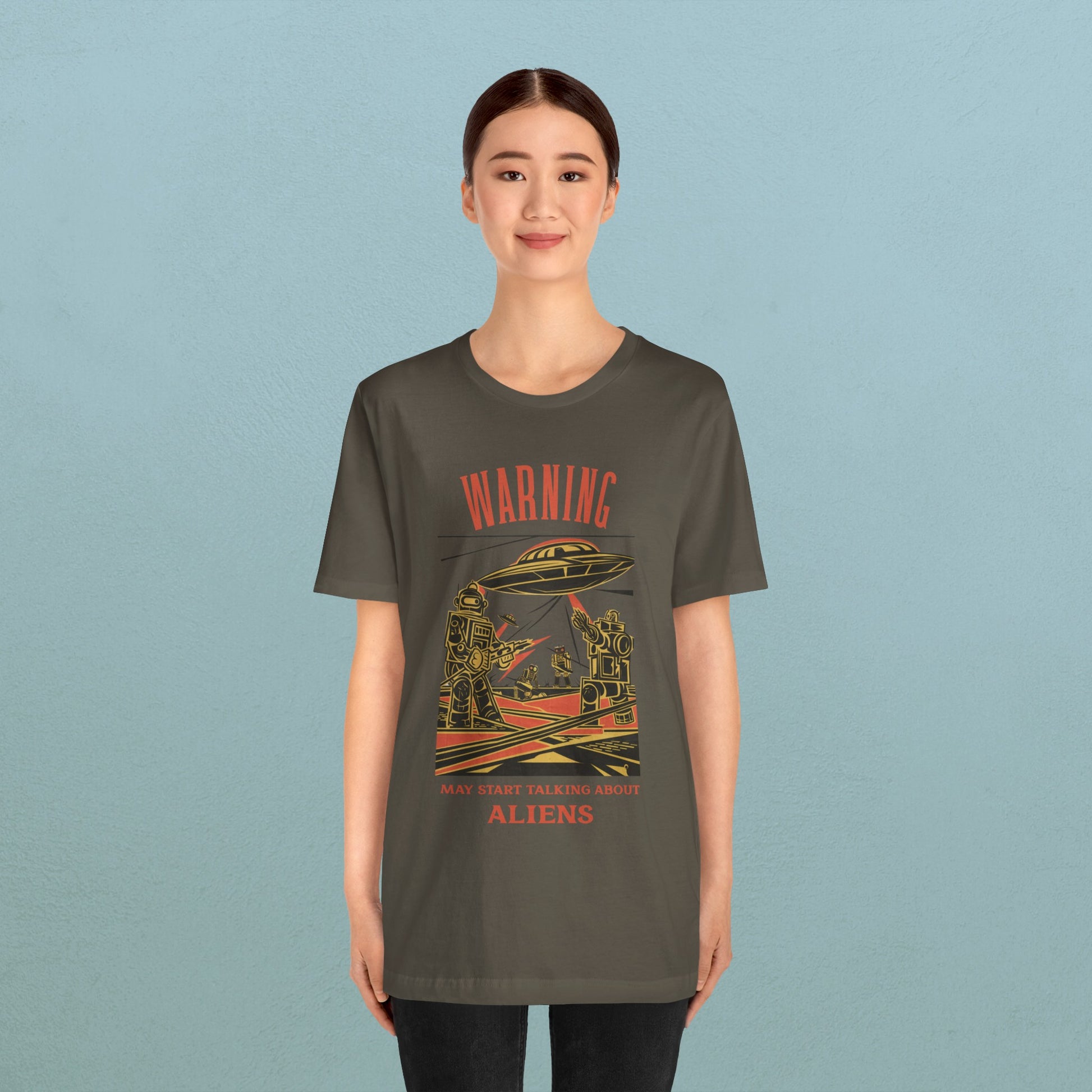 Warning may start talking about aliens (robots and UFO design) - Unisex Jersey T-Shirt